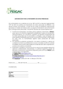 AUTORIZACÍON TRATAMIENTO DATOS PRS por FeigacWebmaster | Ago 20, 2025 | 0 Comentarios Enviar comentario Cancelar la respuestaTu dirección de correo electrónico no será publicada. Los campos obligatorios están marcados con *Comentario * Nombre * Correo electrónico * Web Guarda mi nombre, correo electrónico y web en este navegador para la próxima vez que comente. Δ