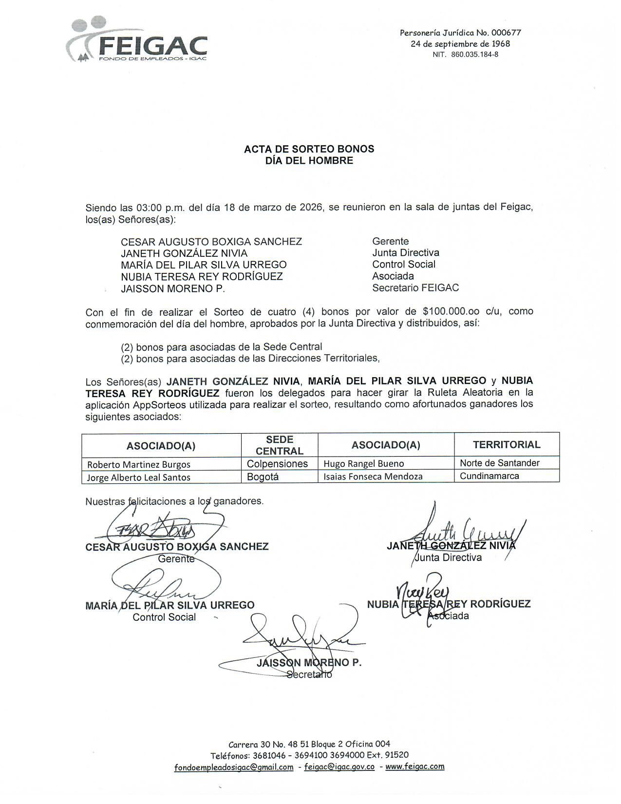 En sorteo realizado el día miércoles 18 de Marzo de 2026, tenemos 4 ganadores.